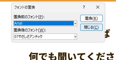 ・フォント置換で標準フォントに変更する