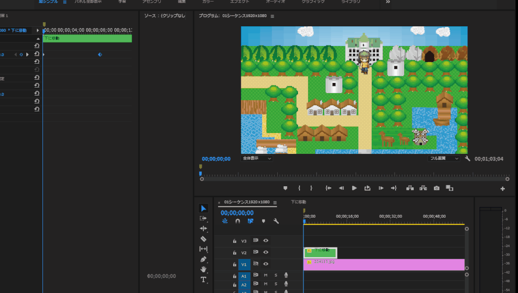 ネストされたシーケンス名は「下に移動」といった感じにしておきます。