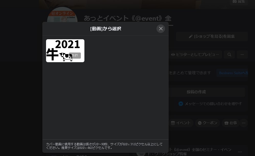 Facebookのカバー動画を作ってみようとしたときに、推奨サイズが820×462ピクセルのようなので、サイズを合わせて作ってみたいと思います。
