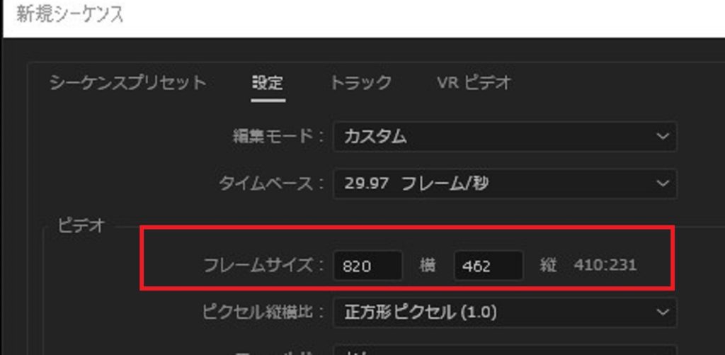 そうすると、「編集モード」をカスタムに切り替えることで、「ビデオ」のフレームサイズをカスタムで自由に決めることができるようになります。