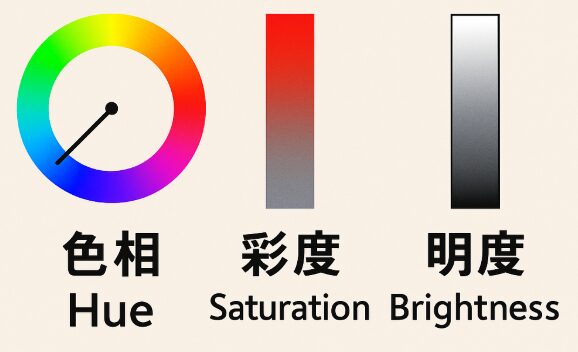 | HSB / HSV | 明度0%で黒 | 明度100%かつ彩度0で白 | 彩度0 = 白に近い | 直感的な明るさ調整がしやすい、写真編集に向く |