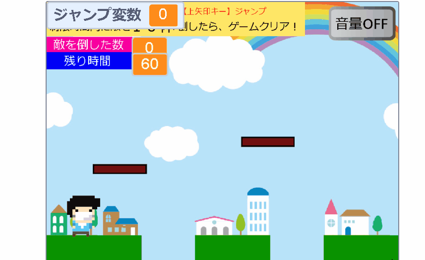 ブロックの端の位置ギリギリにいる場合、上矢印キーを押しっぱなしにすると、2段ジャンプが出来る場合が発生してしまいます。