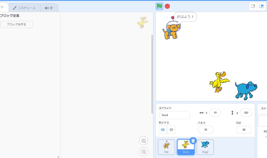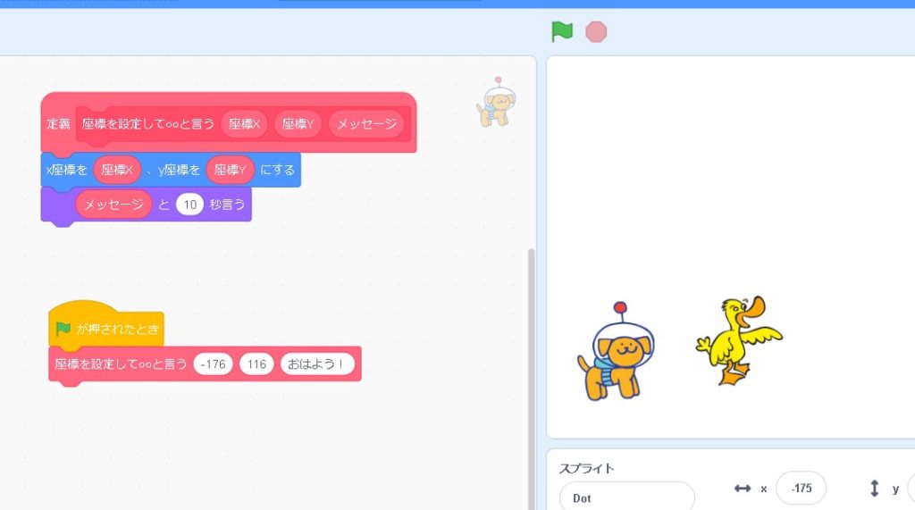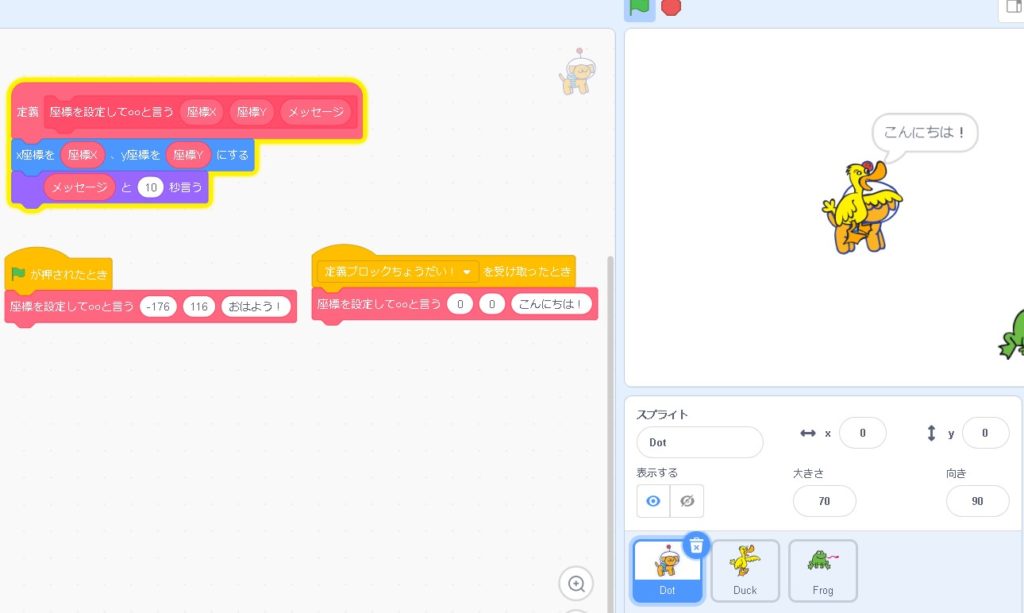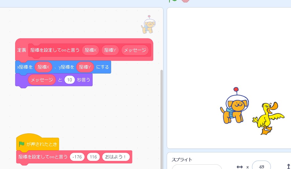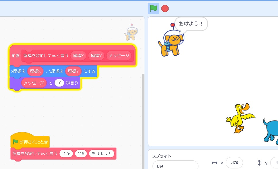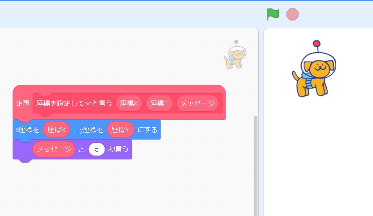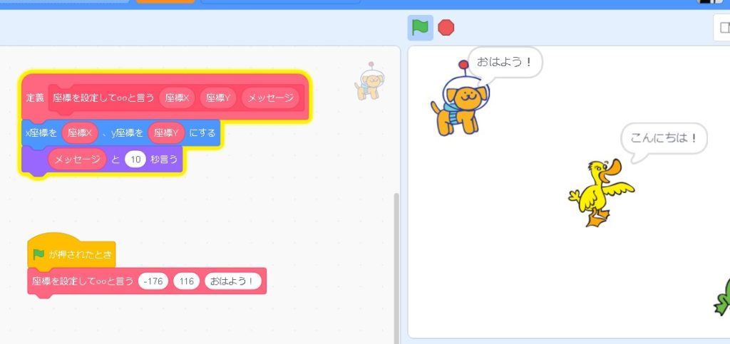これで、定義が完成しました!同じ動作を何度も行う時には「定義ブロック」を使うと便利です!