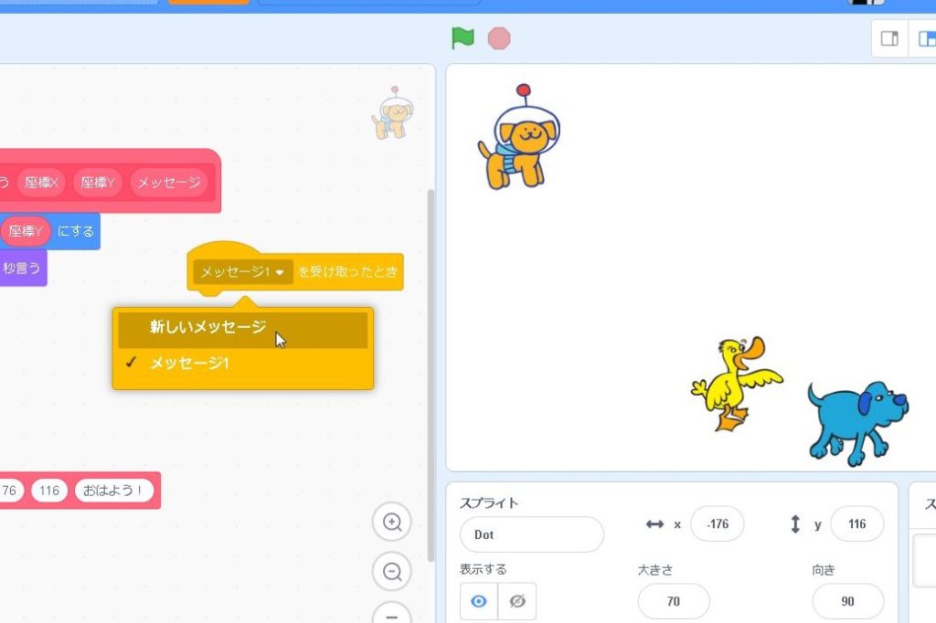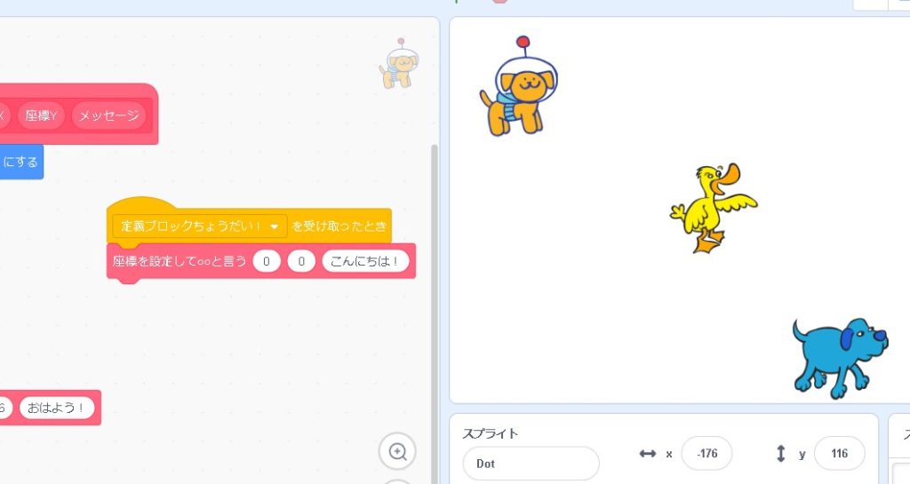 他のスプライトに、作ったプログラムをコピーして渡してあげることができます。