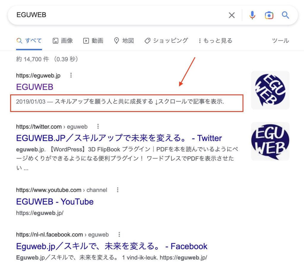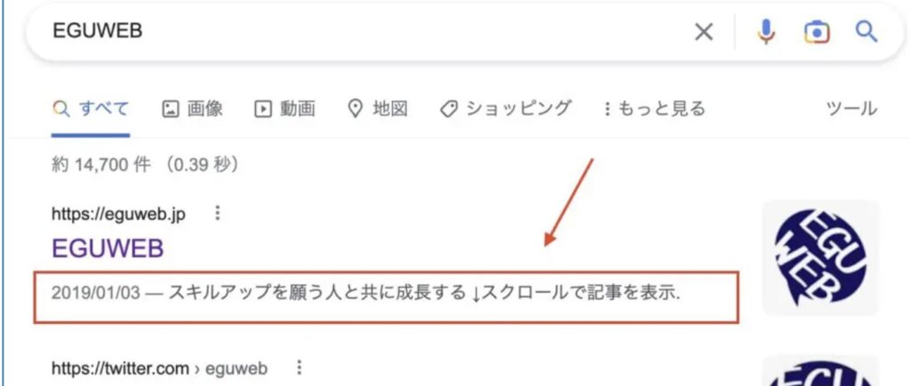 メタディスクリプション(meta description)は、必ずしも検索結果に反映されるとは限りませんが、少なくとも、設定をしておくことで表示させてもらえる確率があります。