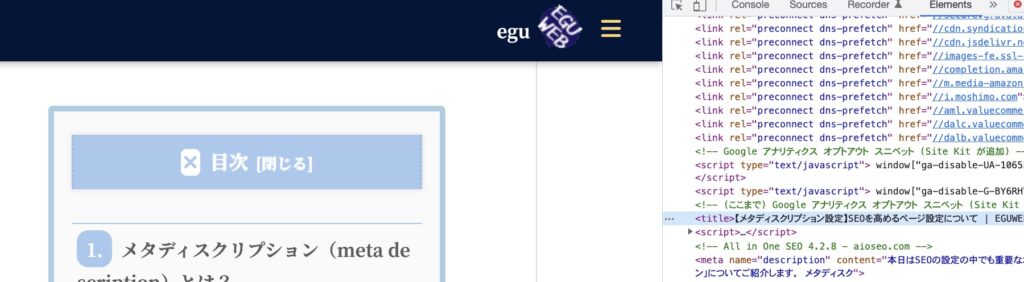 メタディスクリプション(meta description)の設定場所