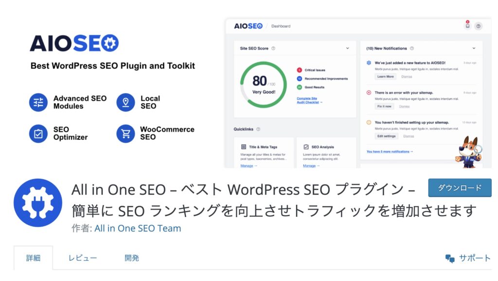 SEO設定ができるプラグインは様々ありますが、代表的なプラグインのひとつが「All in One SEO」です。