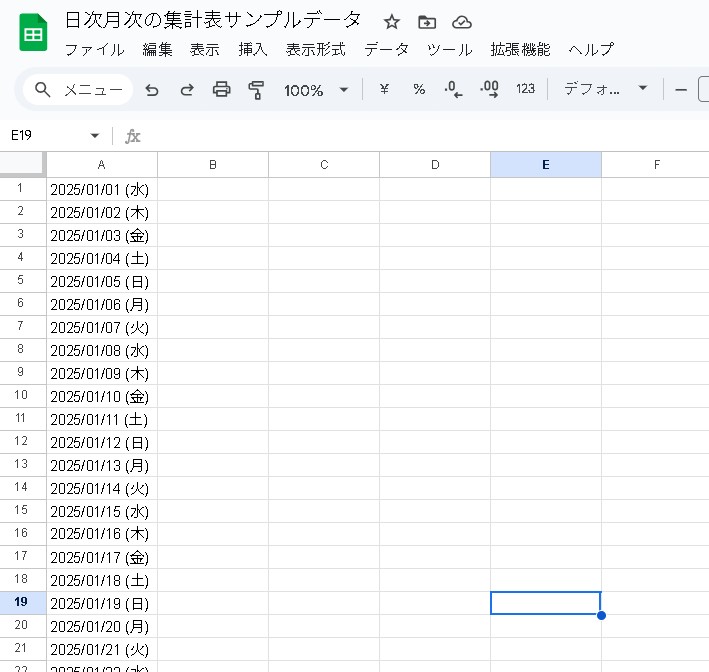 この1行で、「2025/1/1」「2025/1/2」「2025/1/3」……「2025/12/31」までの一覧が完成します。