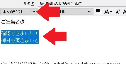 これで、メールを新規作成した際の行間詰まりは無くなり「本文のテキスト」が標準になりました!