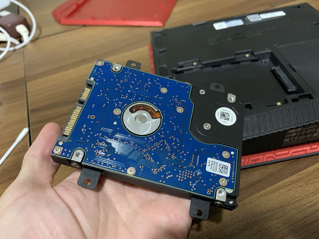 最初から搭載されているのは1TBのHHDですが、2.5インチSSDと交換することも出来ます。