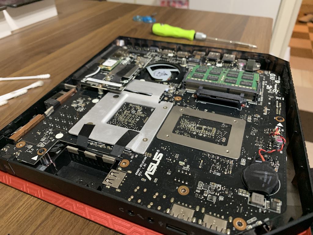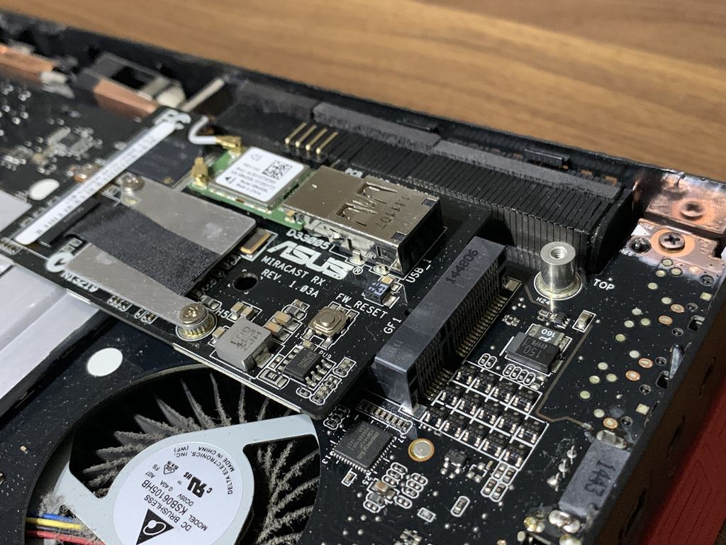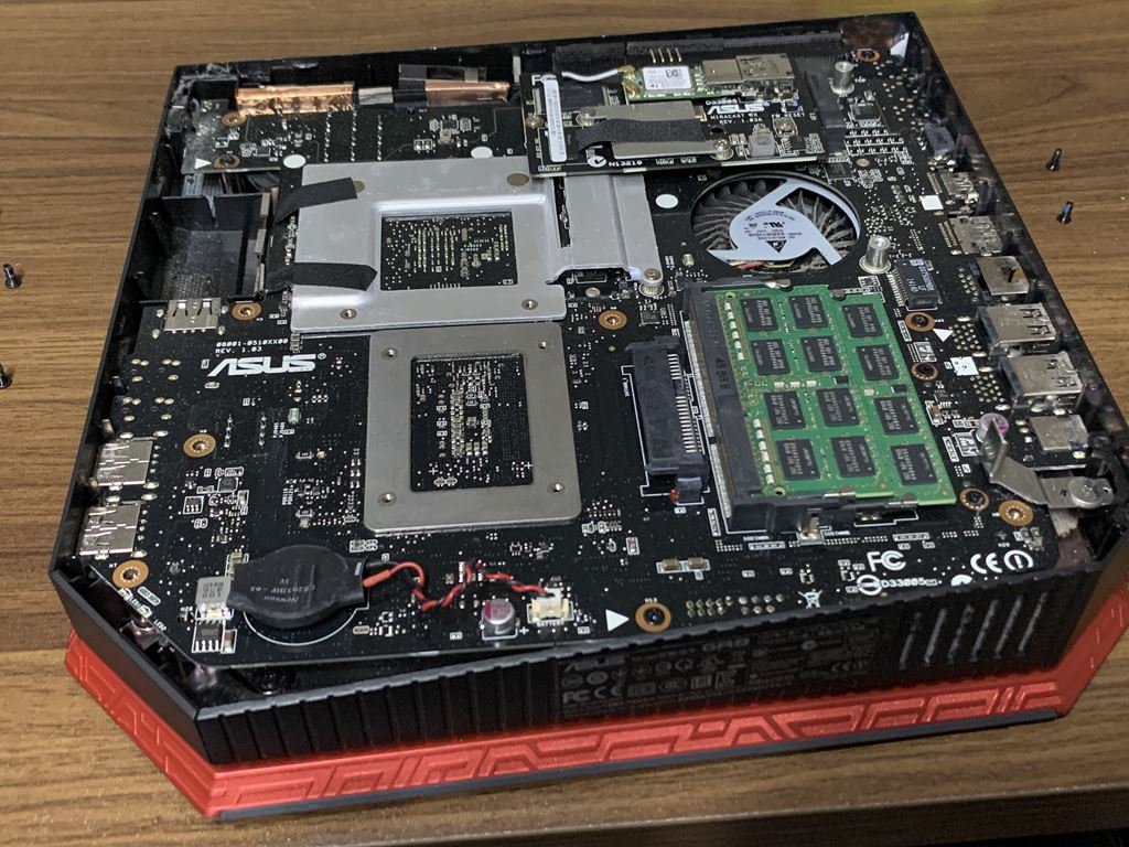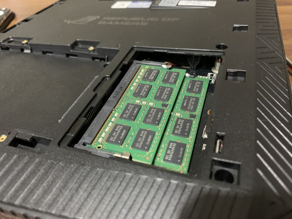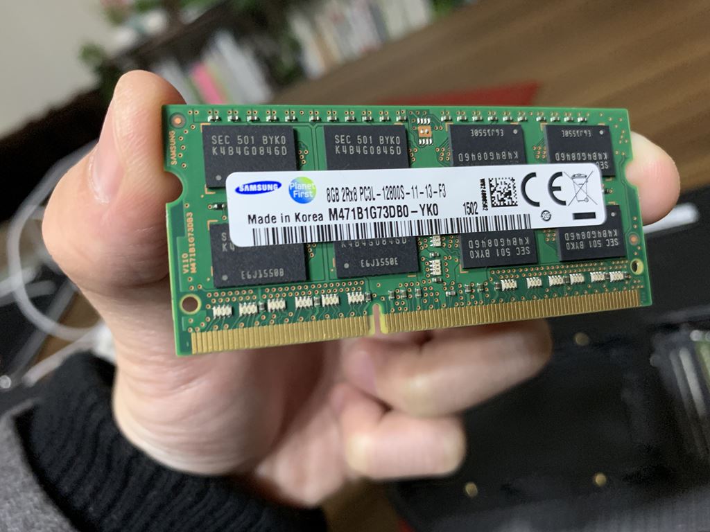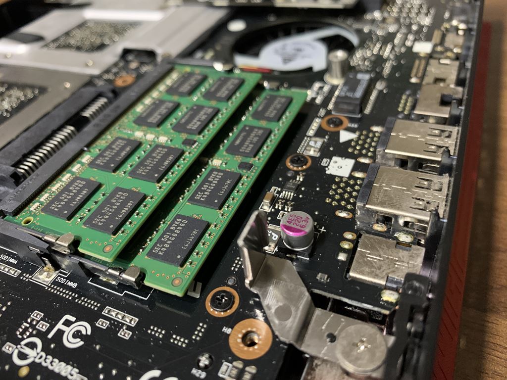 横のパネルを外すと、メモリが積まれています。8GB×2です。