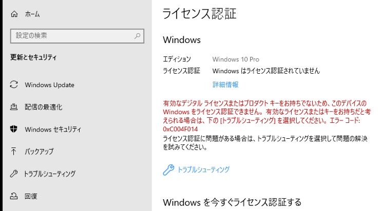 ※以前の記事にも書きましたが、一度ライセンス認証を削除すると、再認証の際にはエラーが発生して再認証できない事がありますので、操作には重々ご注意下さい。