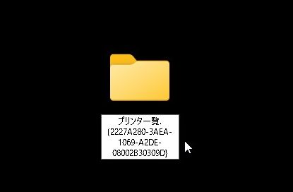 名前変更: 新しく作られたフォルダーの名前を「プリンタ一覧.{2227A280-3AEA-1069-A2DE-08002B30309D}」に変更します。Enterキーを押して確定させます。