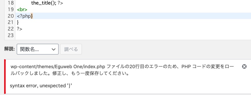 まずはindex.php内のthe_title();の後でphpを一度終了させます。