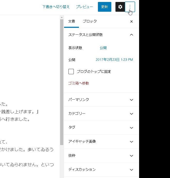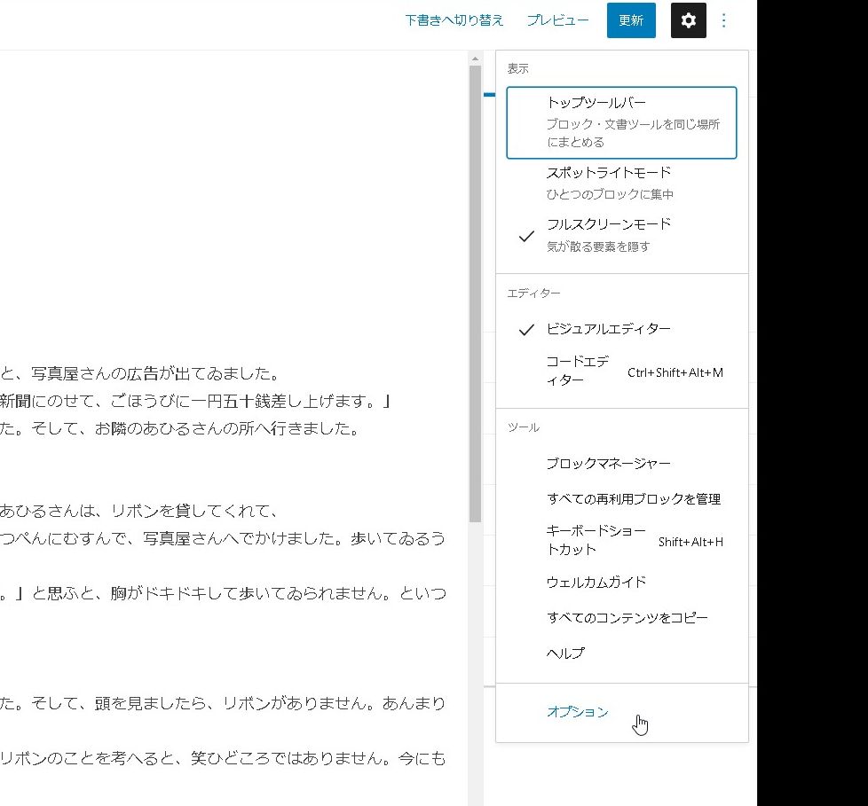 投稿ページ右上の「・・・」の部分をクリックすると、下の方に「オプション」の設定がありますので、こちらを開くと設定画面が表示されます。