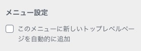 ただし、「このメニューに新しいトップレベルページを自動的に追加」にチェックが入っていると、固定ページを公開したタイミングで自動的にメニューに入っていくので、意図しない固定ページがメニューに追加されてしまう可能性もありますので、注意が必要です。