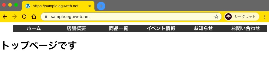 ワードプレスの「メニュー」という機能を使うことで、よくある「店舗情報」「商品一覧」「イベント情報」「お問い合わせ」といったメニューを画面の上部(ヘッダー部分)や下部(フッター部分)に追加をすることができます。