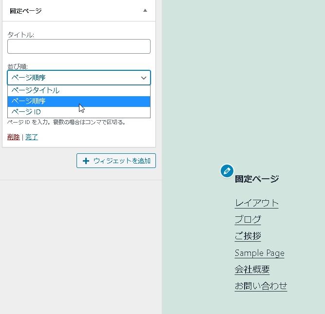 ウィジェットなどに配置する際のページの並び順は「ページ順序」にしておきます。