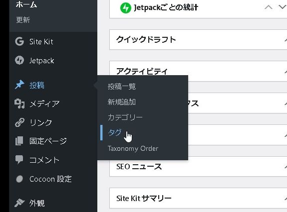 タグのスラッグ変更は、「投稿>タグ」のページから行えます。