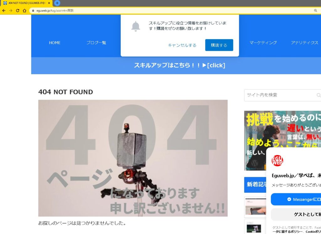 ページのURLが変わってしまうと、インターネットの検索結果や、ブックマーク登録していた人が開こうとする時に「404」ページでPAGE NOT FOUND、になってしまいます。