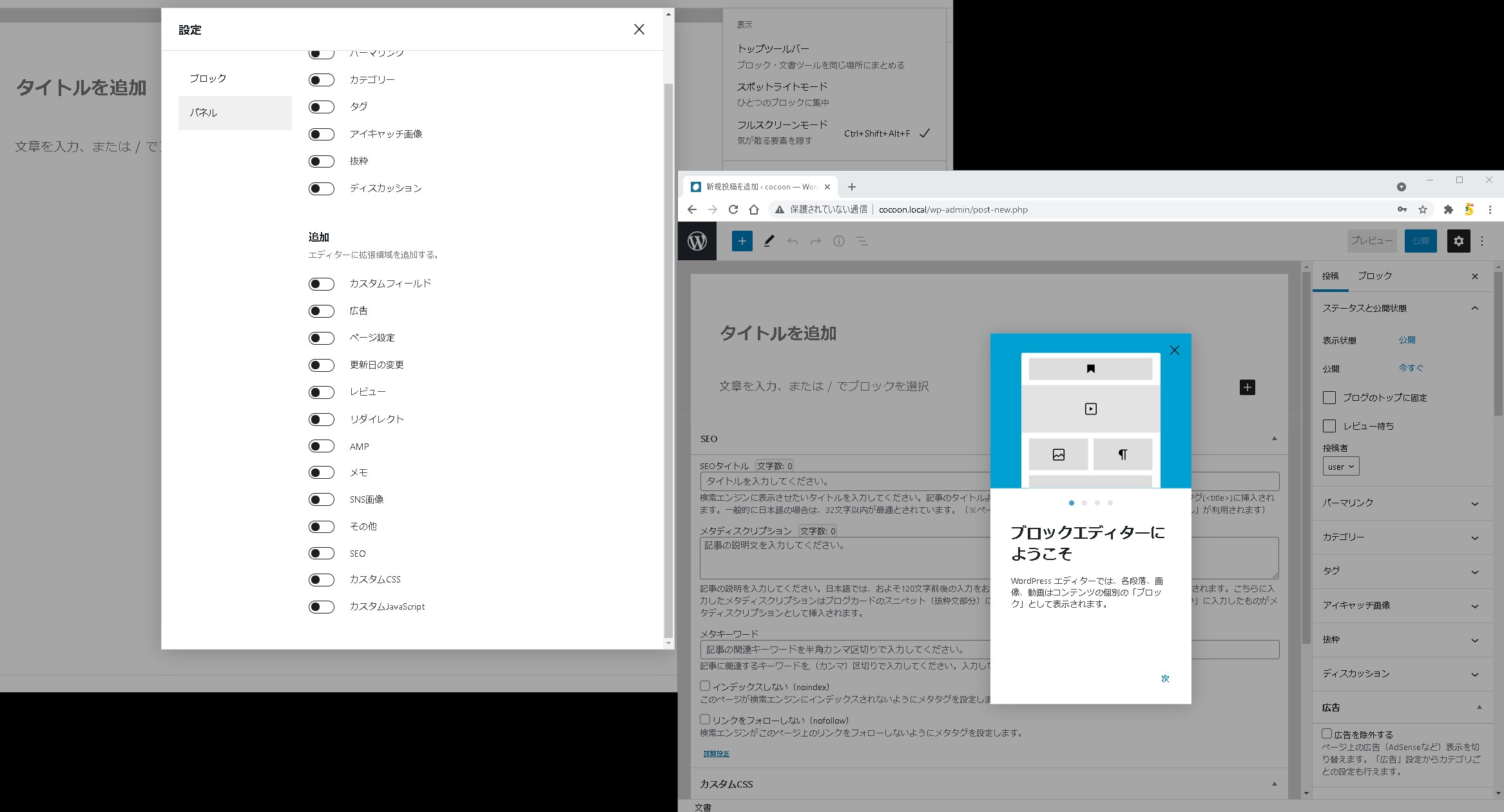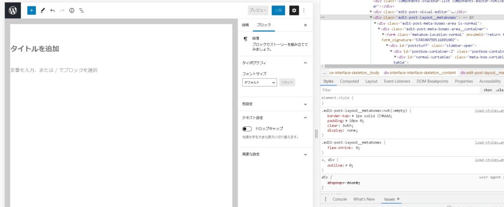 今回は「editor-style.css」を編集して、すべてのユーザーに対して、投稿画面上から不要なパネルを非表示にする方法について試してみたいと思います。