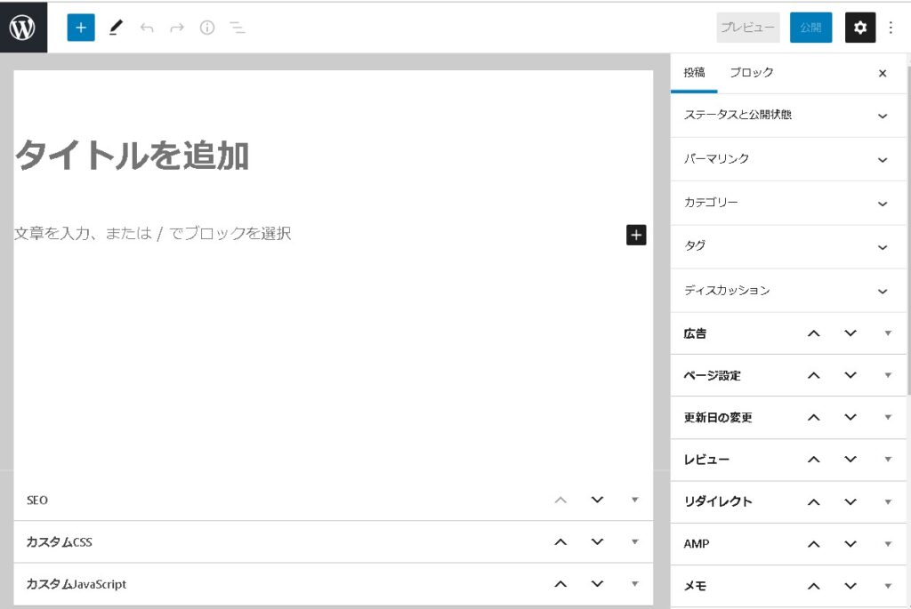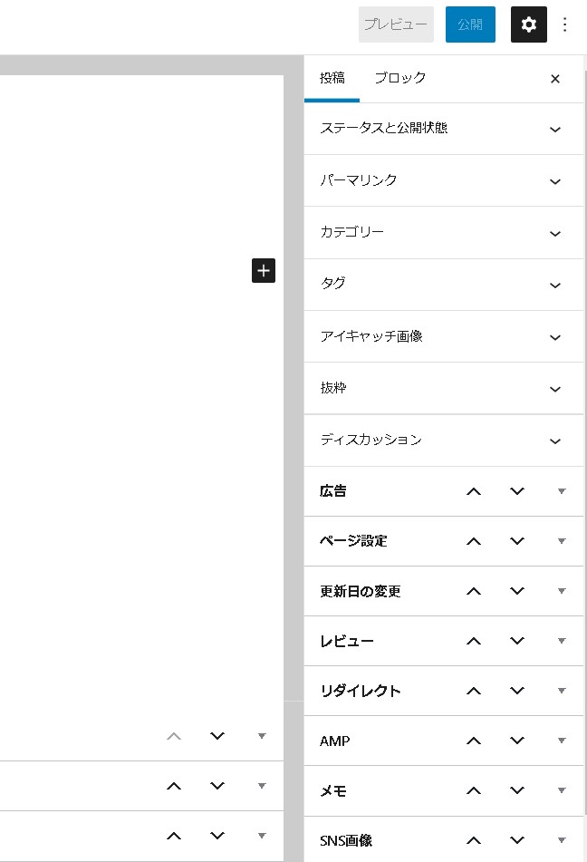 ただ、運用状況によっては「カテゴリーだけあればいい」「アイキャッチ画像のみ設定できるようにしたい」「アイキャッチ画像を設定されたら困る」など、色々とあるかと思いますので、非表示にしてみます。