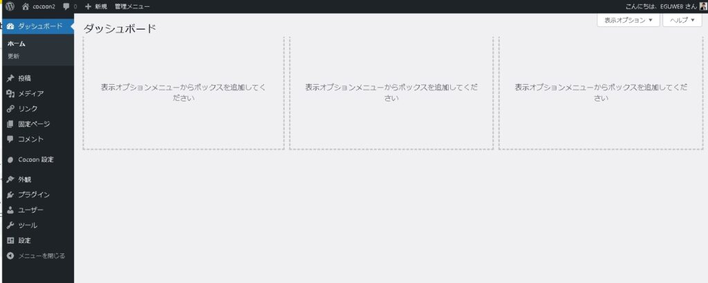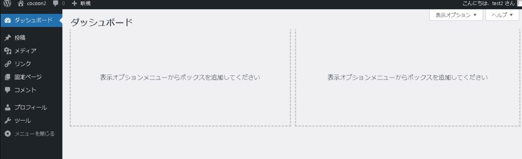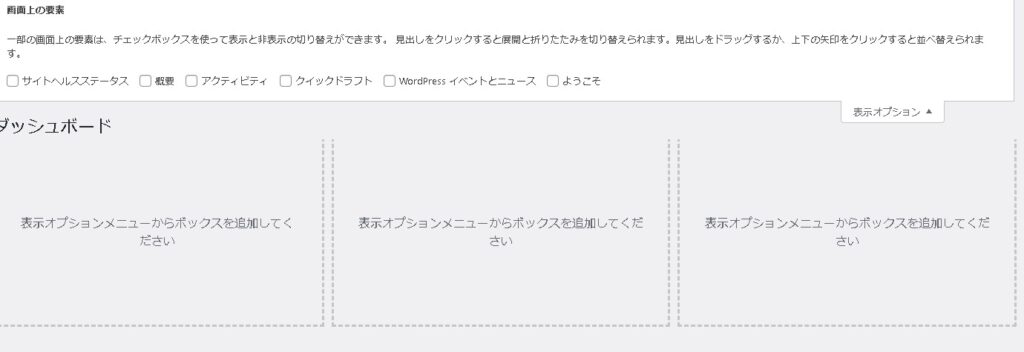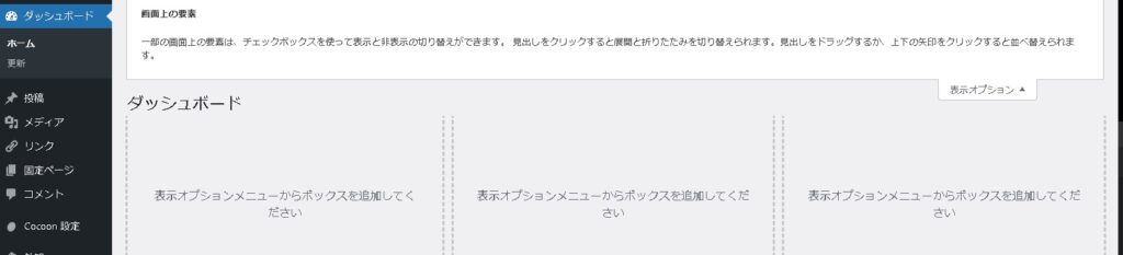 これで、管理者のダッシュボードウェルカムパネルからも、全てのパネルが非表示になりました!