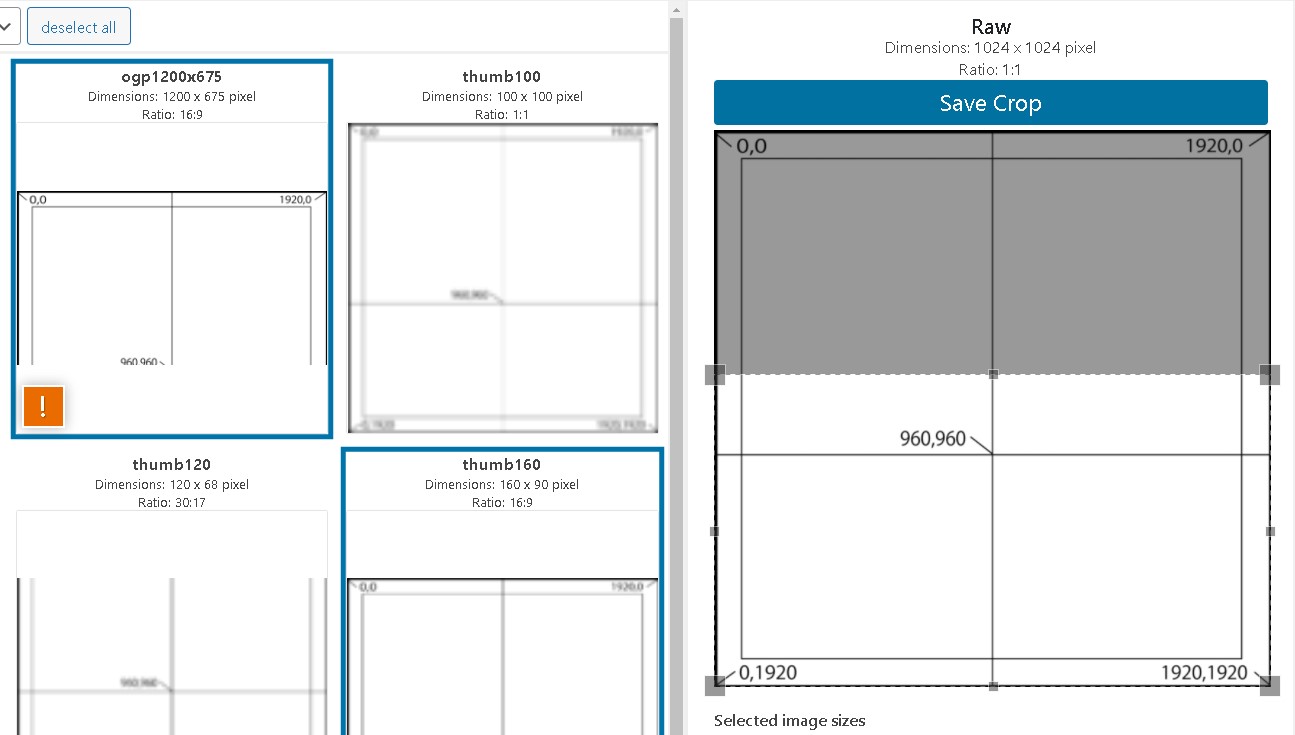 "Crop Thumbnails" made it easy to get exacly that specific image-detail you want to show in your featured image or galle...