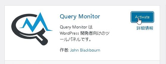 使い方は簡単で、プラグイン「Query Monitor」を検索してインストール、有効化するだけですぐに使えます。