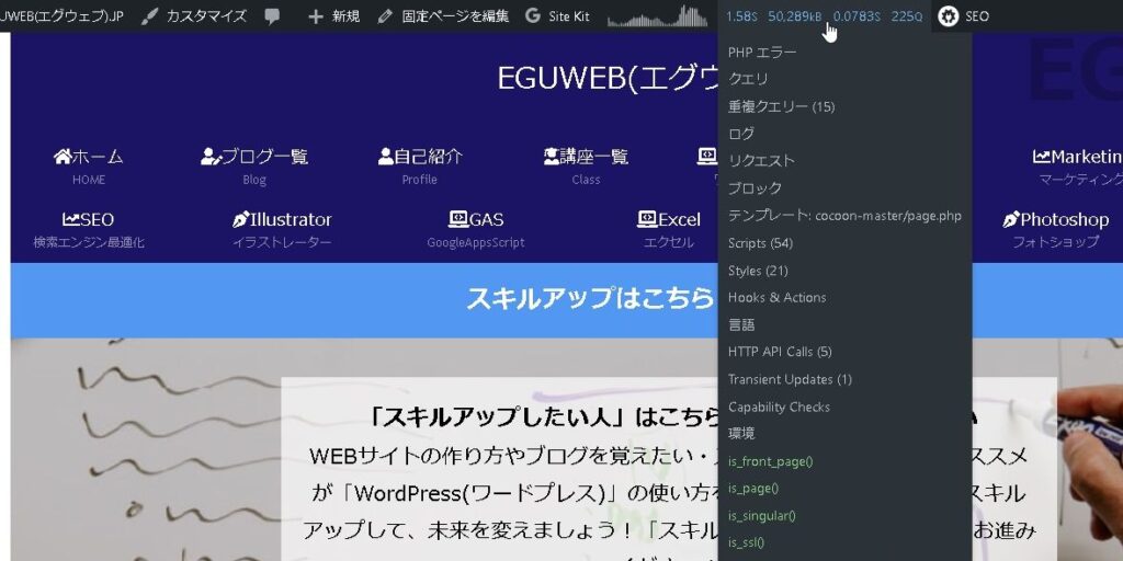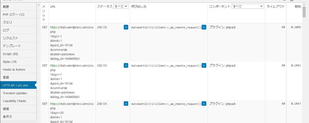 「Query Monitor」はどちらかと言えば開発者向けのプラグインになるかと思いますが、ひとまず、どのクエリ(検索)に時間が掛かっているのか?を知るだけでも有益なプラグインです。