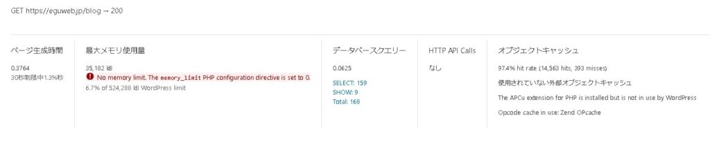 なんと「9.68秒→0.37秒」という結果に。ページ生成時間が、すこぶる早くなりました。