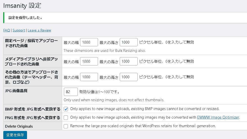 有効化すると、「設定」>「Imsanity 設定」が追加されますので、ここから設定を進めていきます。