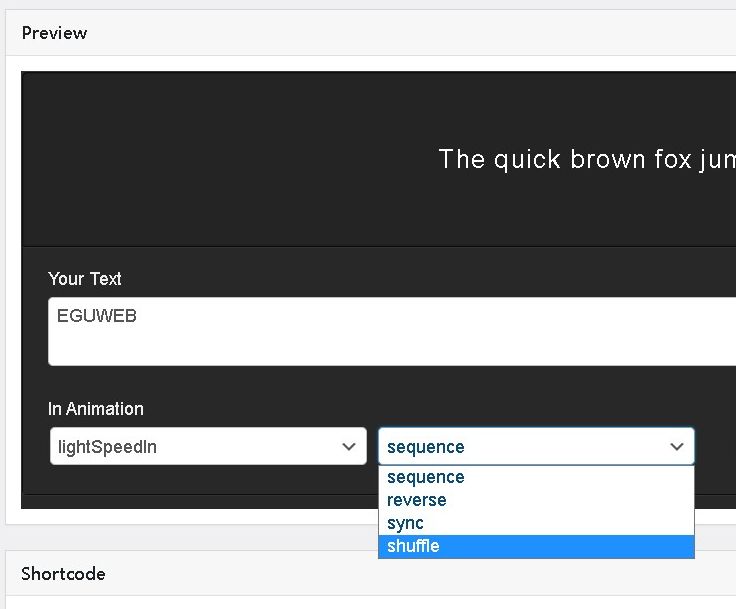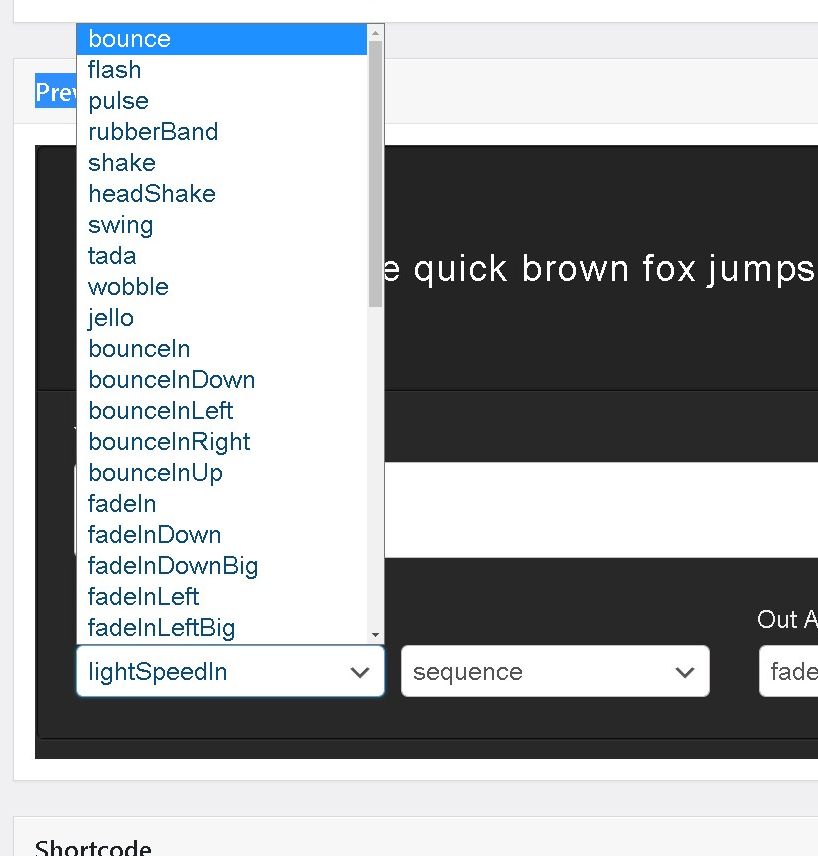 Previewの部分で、設定するテキストや、アニメーションの種類・動作を設定できます。