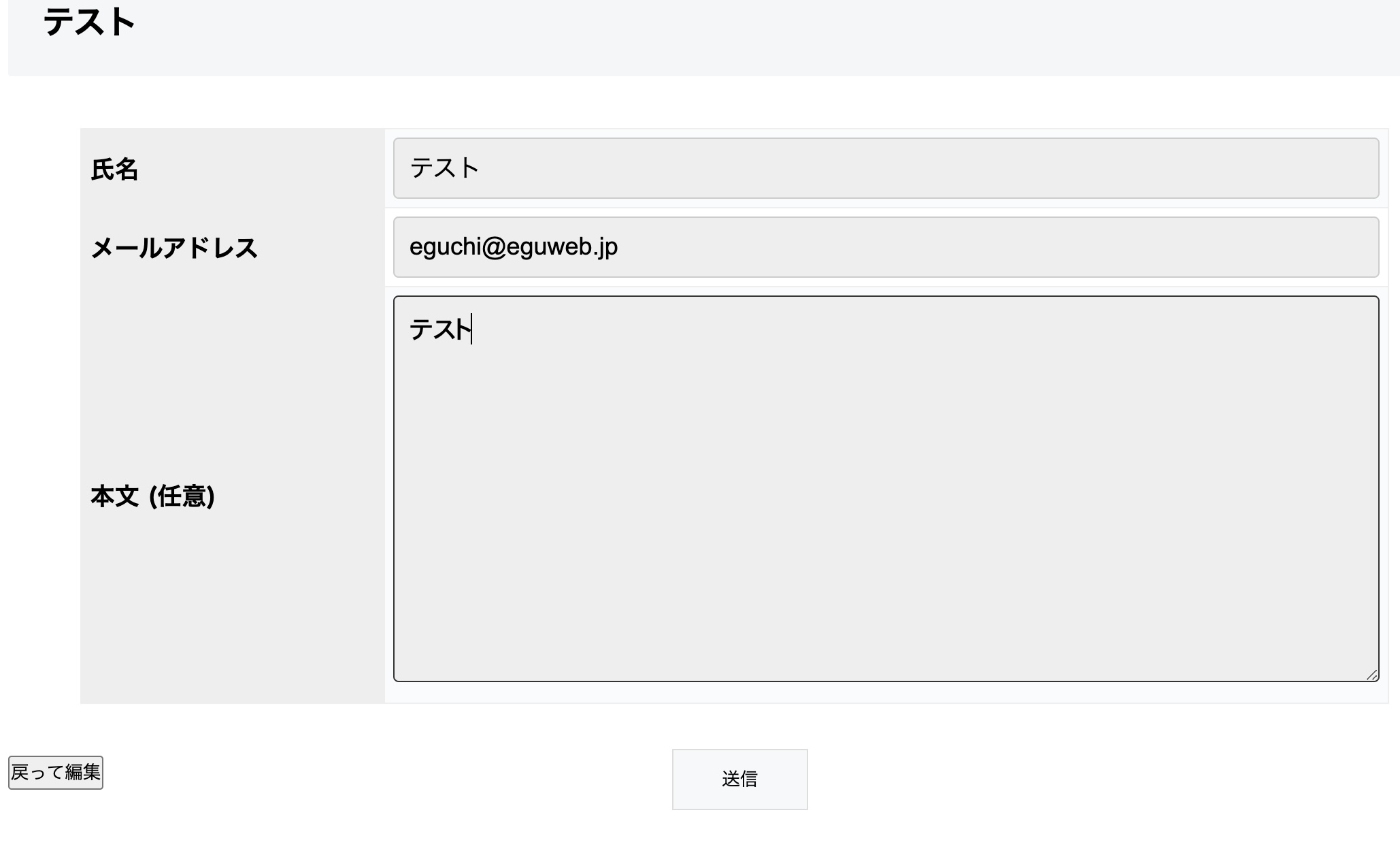 標準のContact Form 7とは違い、「確認画面」を表示して送信が可能になります。