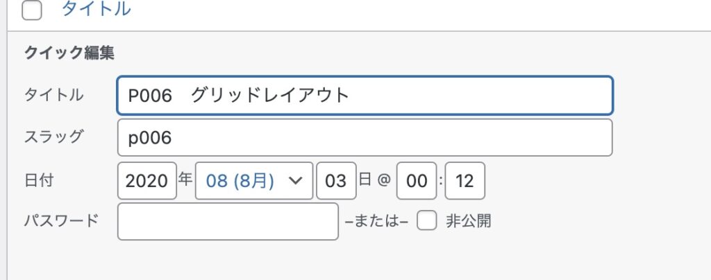 2つ目は、公開日時を変更して並び替える方法です。先ほどのようにタイトルが番号順になっていないときに使えます。