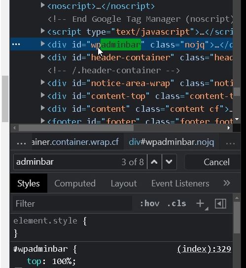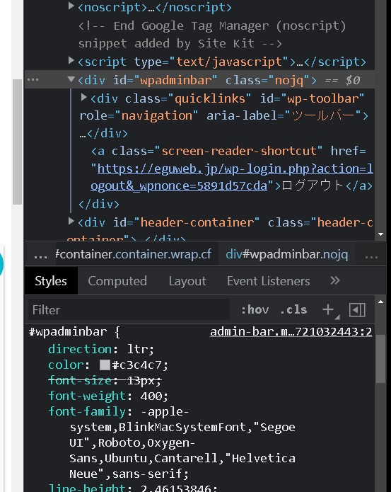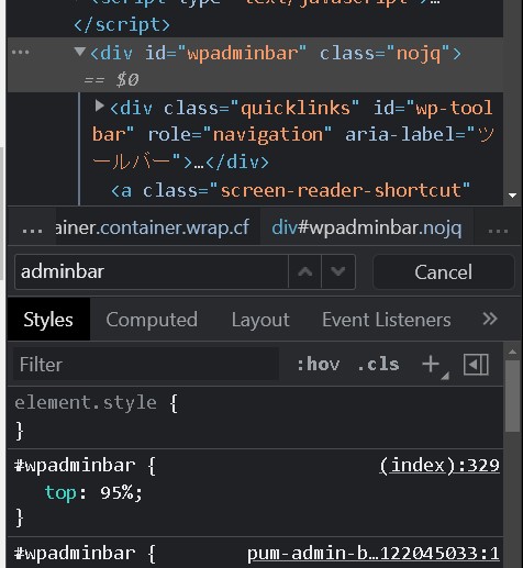 まずは、wpadminbarのCSSを見てみると、下記のようになっていました。