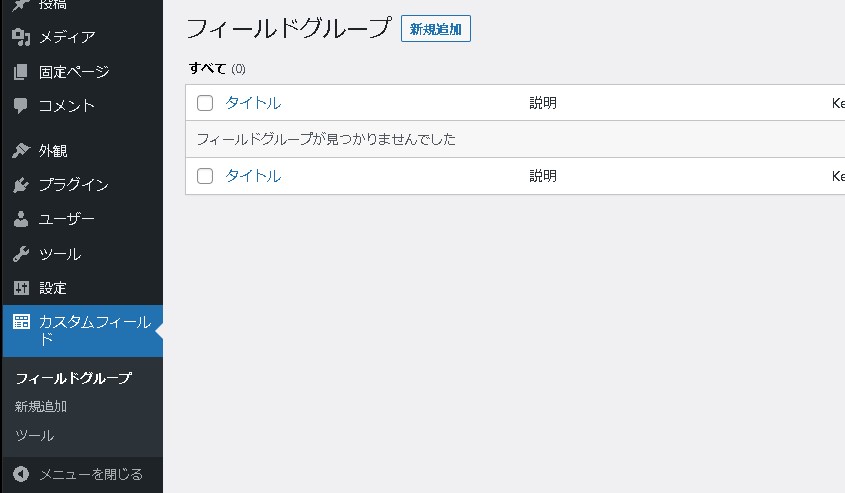 有効化すると、「カスタムフィールド」というメニューが管理画面に追加されます。