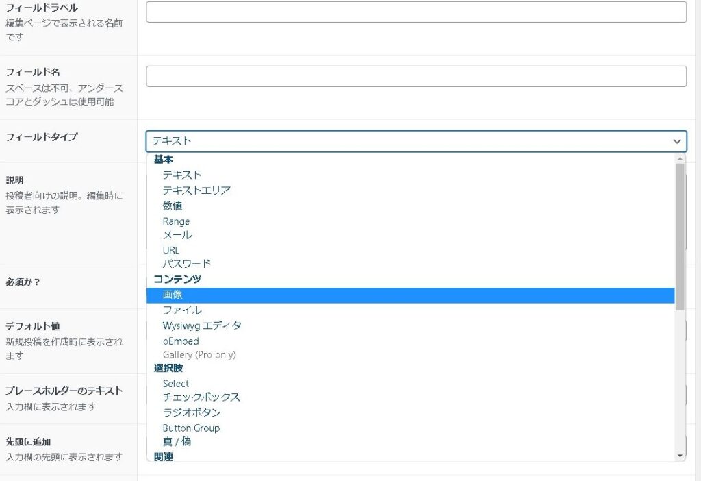 フィールドは、テキスト以外にも「数値」や「画像」など、様々なフィールドを設定できるようになっています。