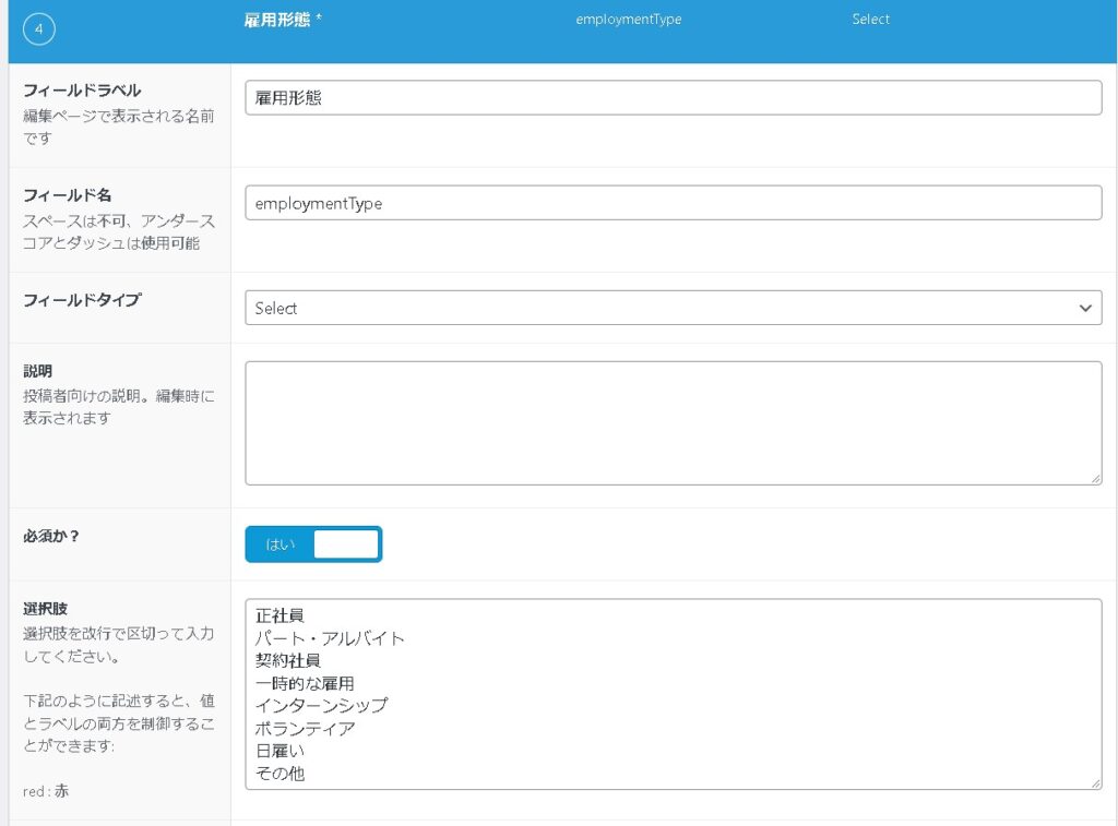 先ほど作成したカスタムフィールドが入力・選択出来るようになりました!