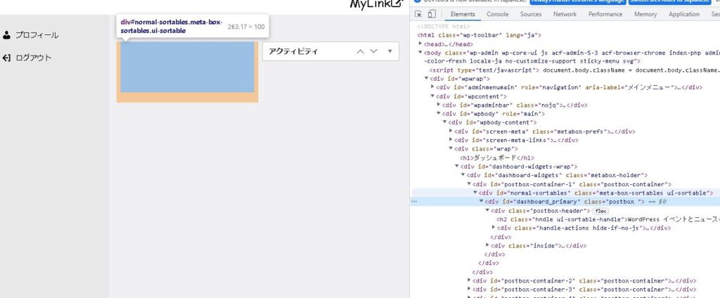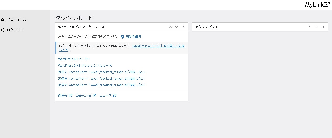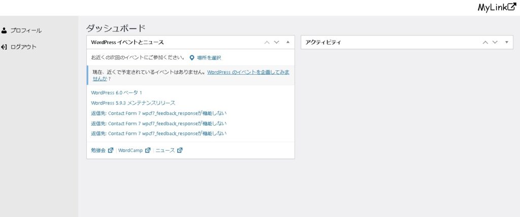 「WordPressイベントとニュース」や「アクティビティ」を非表示にする方法です。