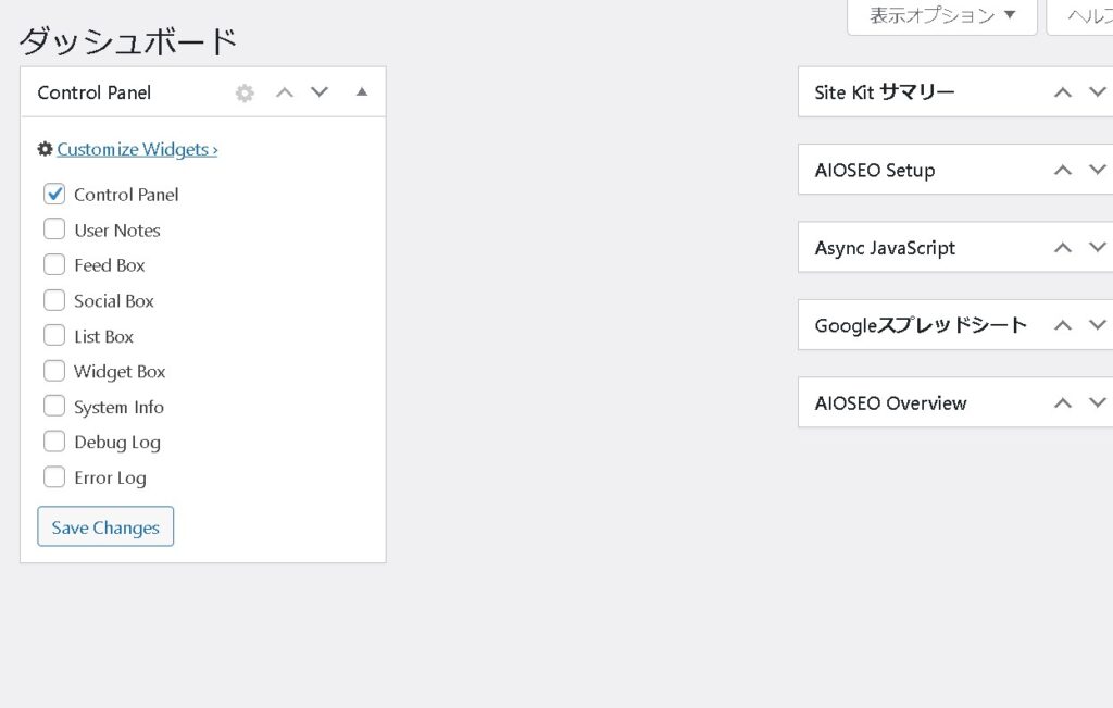 コントロールパネルをONにすると、ダッシュボードにControl Panelが表示されます。