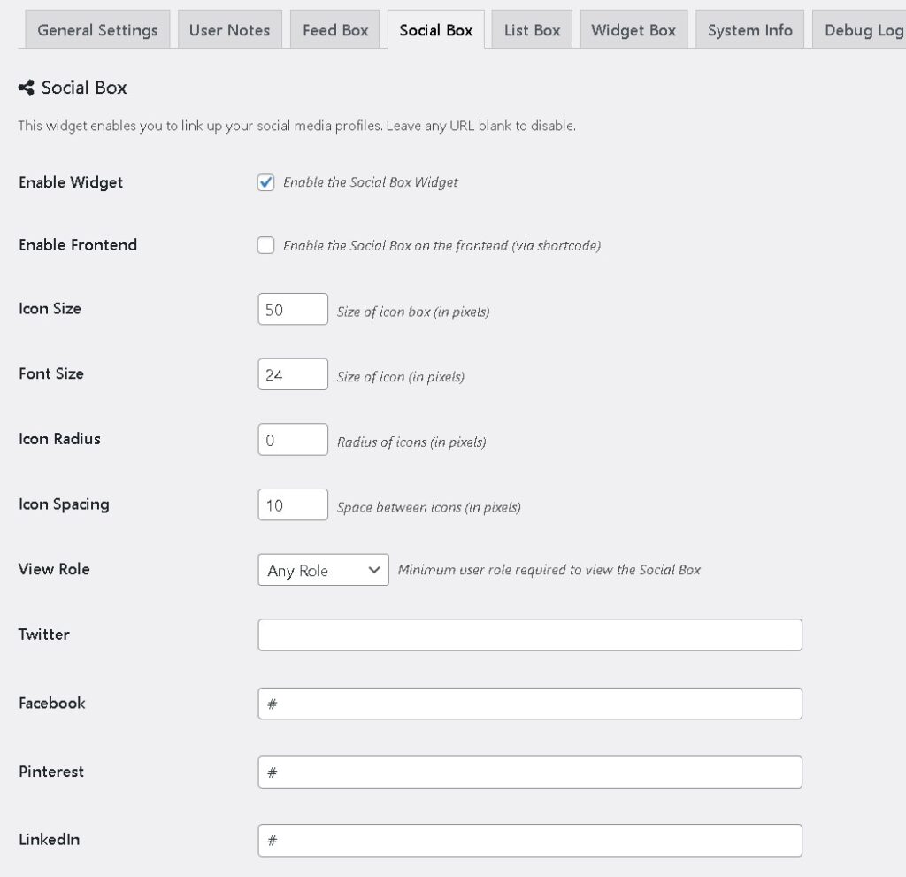 Social Boxです。ONにしてURLを設定すると、ワンクリックで指定のSNSページにアクセスできます。