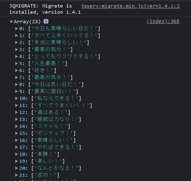 Googleスプレッドシートのデータを取得することができました。あとはこちらのデータを使ってHTML側でなにかの処理を行ってあげることができます。