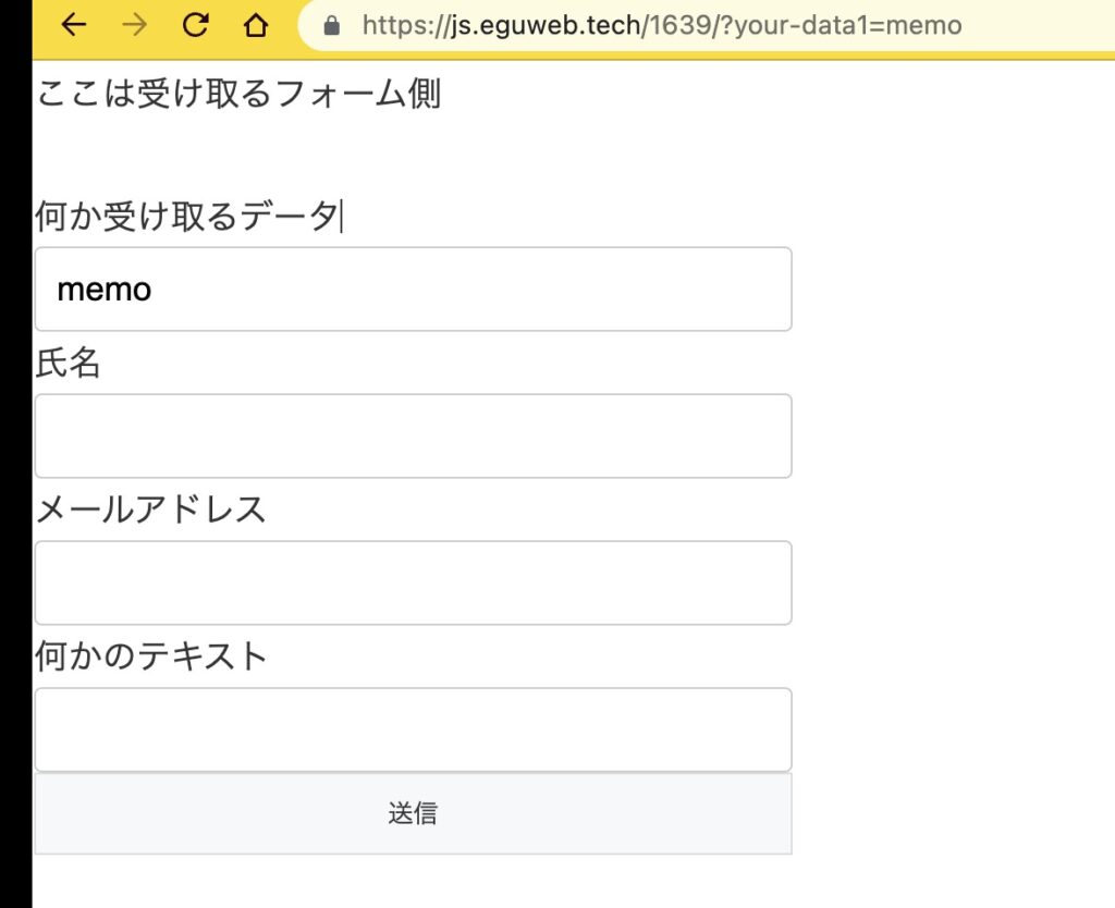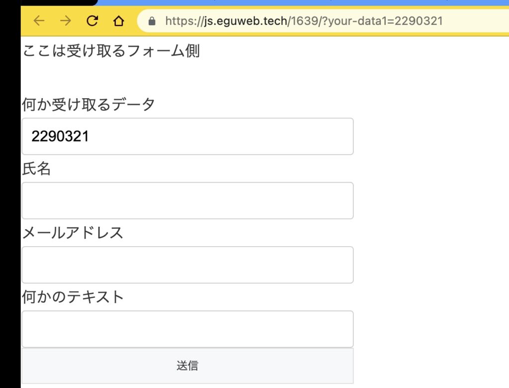 このような感じで、クエリパラメータを使ってデータの受け渡しができるようになっています。便利ですね。