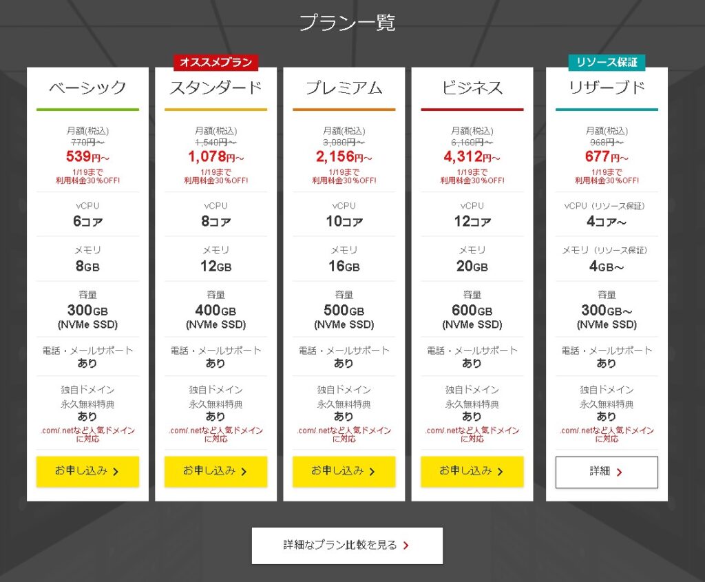 ただ、あとでプランアップグレードも出来ますので、最初はスタンダードプランから始めても良いかと思います。