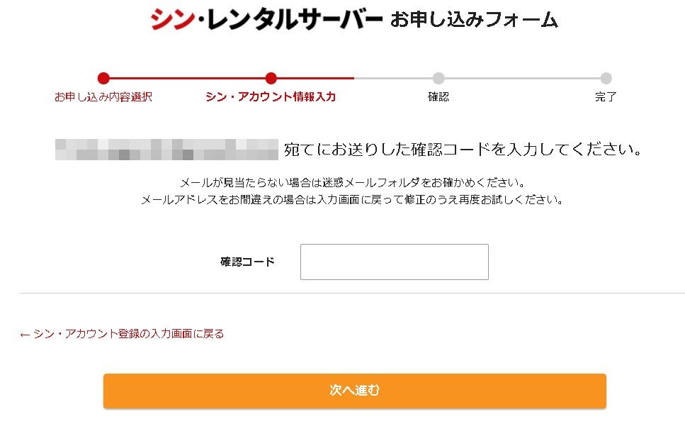 全て入力したら「Xserverアカウントの登録へ進む」で先に進みます。