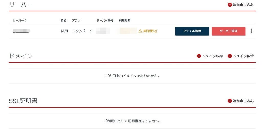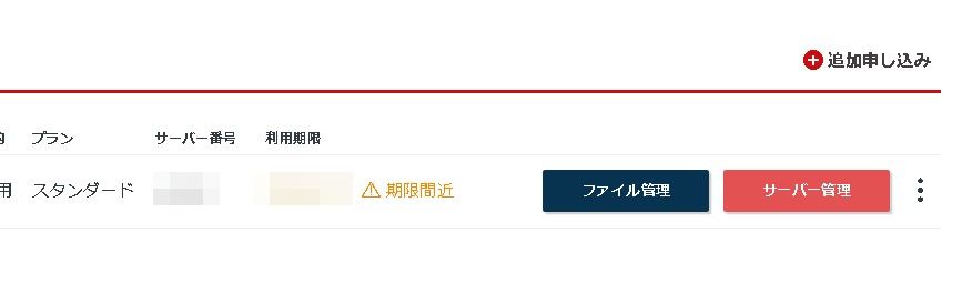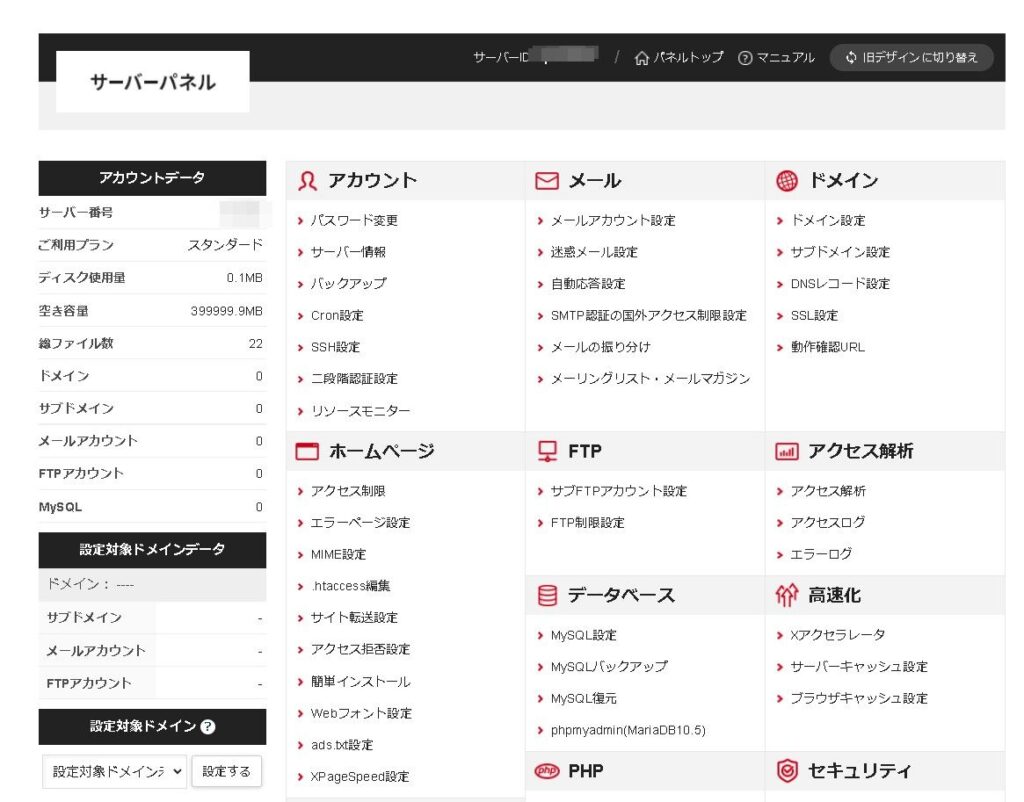 「サーバー管理」と書いてあるボタンを押すと、サーバーパネルと呼ばれる管理画面にログインすることができます