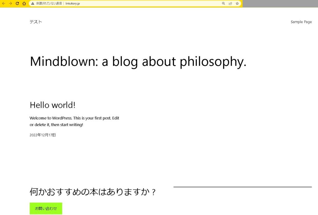 時間を置いて再度アクセスすれば、ワードプレスサイトが表示されているはずです。