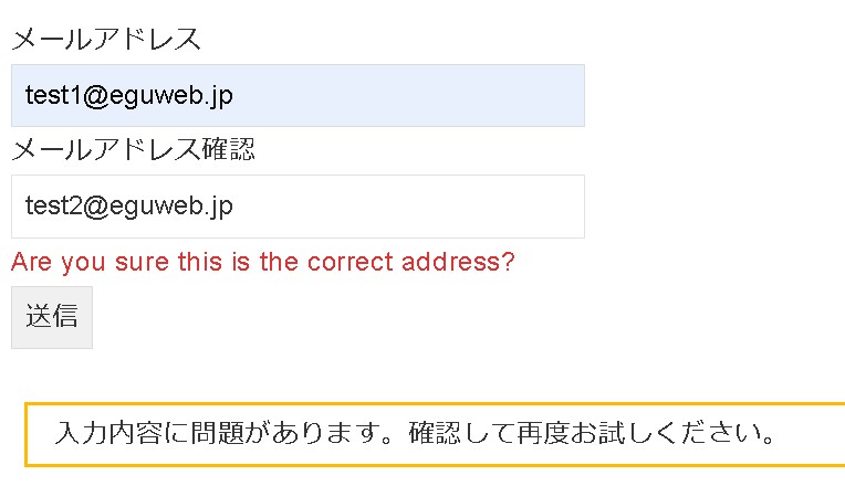 メールアドレスが正しいかどうか2回入力して、検証するフォームを作成します。